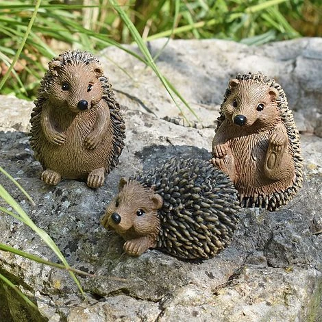 3 Hedgehog Garden Animal Ornaments Outdoor Wildlife Statues