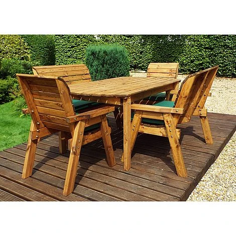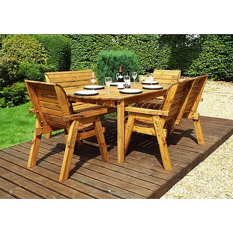 6 Seater Rectangular Table Set with Benches: The 6 Seater Rectangular Table Set with Benches is an ideal dining set for a family keen on dining alfresco. The 6 Seater Rectangular Table Set with Bench is made of Scandinavian Redwood which is a beautiful and durable wood resistant to decay and disease. It is fully treated for your peace of mind. The generously sized and sturdy seats of both chairs and benches come with a set of cushions in any one of three attractive colours. The set also includes a parasol with its base and a storage bag for the cushions. Gather your loved ones and share a pitcher of margaritas, finger food, dinner, or Sunday roast amid your lovely garden. No matter the moment, the 6 Seater Rectangular Table Set with Benches Set is sure to enhance your outdoor space with its traditional design and its rustic charm of natural wood.Please note that uses the White Glove bespoke delivery and assembly service.