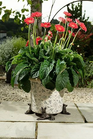 The multi award-winning German Shepherd Potty Feet have been custom designed and manufactured by Jardinopia, and are made from a unique formula of crushed stone and durable poly resin, making them frost proof and UVA resistant – so they can be safely used outside or indoors throughout the year! They are handmade and hand-painted using lead-free products, so each one is unique. The German Shepherd comes in a set of 3 so that your plant pot stands evenly balanced on any surface – whether in your home or outside, and displayed beautifully on your decking or patio. They can adjust to suit any width of pot, and Potty Feet can take any weight of pot or planter! Potty Feet are designed to fit most shapes of pot, although we cannot guarantee that they will fit every design. Each set of 3 Potty Feet come beautifully packaged using 100% recycled and FSC certified materials in custom designed and branded gift boxes, making this an ideal and unique gift for loved ones and friends. They are also safely encased within a foam protection layer (also 100% recycled), making breakages in transit highly unlikely. The packaging can be onward recycled once discarded. WEIGHT (packaged set of 3): 0.744kg. DIMENSIONS (single pot feet): H7.5 x W11.5 x D8cm.