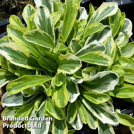 Distinctive from other varieties of rock cress which have plain green leaves, Arabis ferdinandi-coburgi ‘Old Gold’ has striking variegated foliage which provides attractive, evergreen groundcover. Forming neat, mat-forming rosettes of dark green leaves with yellow margins, it works beautifully with violet aubretias and late-flowering tulips. In April and May it produces airy sprays of sweetly-scented, white flowers on wiry stems. Arabis ‘Old Gold’ thrives in full sun in dry, poor soil and is ideal for ground cover, walls, rockeries, edging and containers. Height: 10cm (4”). Spread:20cm (8”).