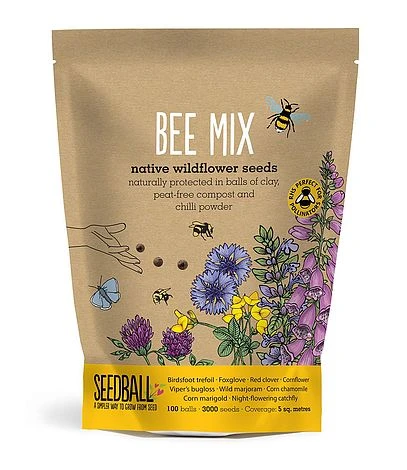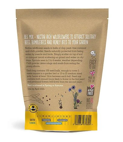One bag of Bee Mix contains 100 seed balls, enough to cover 5 square metres in a garden bed.
