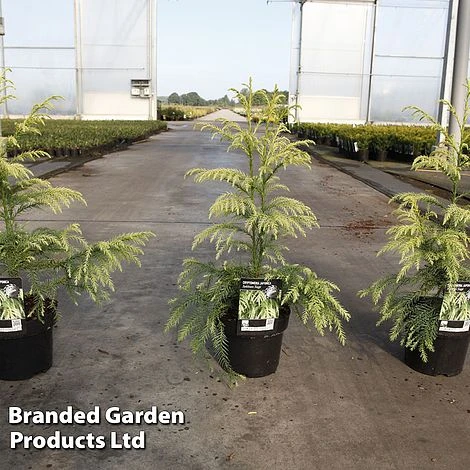 Named after the Japanese word for yellow – “Sekkan” – Cryptomeria japonica ‘Sekkan Sugi’ creates a strong impression in the landscape with its creamy yellow foliage, which is at its most intense in spring and early summer before maturing to dark green. ‘Sekkan Sugi’ forms a medium, pyramidal to columnar tree composed of softly pendulous branches covered in awl-shaped leaves. In autumn, spherical cones dangle from the ends of the branches. A graceful specimen tree for garden borders, it also suits container growing. RHS Award of Garden Merit. Height: 4m (13ft) Spread 1.5m (5ft) in 20 years.