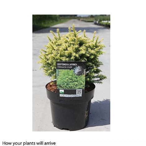 A small ball of dense green foliage will slowly form in beds, rockeries and low maintenance gardens if you plant Cryptomeria japonica ‘Vilmorin Gold’. Maintaining its small size with no need for any extra work, this dwarf conifer is easy to grow and can be used almost anywhere in your garden borders and in containers. The foliage will turn a reddish colour over winter before returning to its normal evergreen in the spring! Height: 30cm (12″). Spread 30cm (12″).