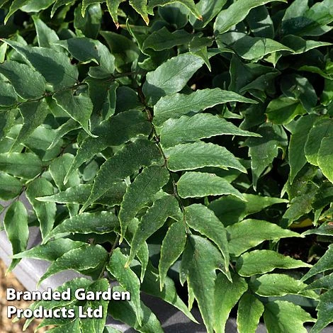 Hardy ferns make some of the best foliage plants for their understated elegance and beauty. The winner of an RHS Award of Garden Merit, Cyrtomium fortunei produces upright ‘shuttlecocks’ of light green leathery fronds with contrasting black stems. Highly reliable and very easy to grow, this top-performing evergreen fern is perfect for creating year-round interest in shady spots, woodland gardens and damp borders. Height: 40cm (16″). Spread: 60cm (24″).