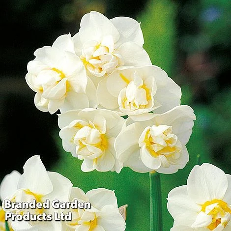 - Daffodil ‘Cheerfulness’ – This RHS AGM daffodil produces highly fragrant clusters of blooms on slender, sturdy stems. The creamy-white petals surround delicate, double yellow and white centres. Height: 40cm (16″). Spread: 15cm (6″).