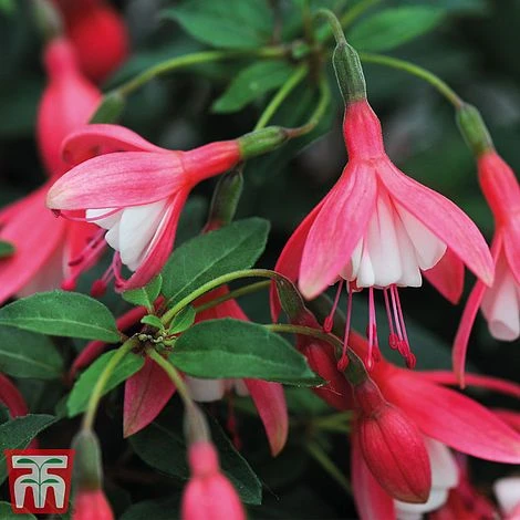 Fuchsia ‘Lady Thumb’ is a neat, compact hardy fuchsia for patio pots, rockeries or mixed perennial borders. The classic flowers are pink and white, and produced in profusion from June and on into the summer. Fuchsias will grow very well in sun or part shade, and are excellent for difficult corners of the patio. Fuchsias require very little maintenance, just some casual deadheading every few days will encourage more blooms. Height: 30cm (12″). Spread: 45cm (18″).