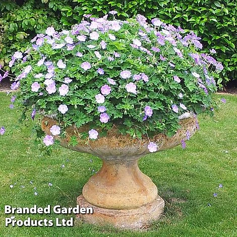 A sport of the deservedly popular Geranium ‘Rozanne’, Geranium ‘Azure Rush’ exhibits the same incredible flower power as its parent, but on a much lower-growing plant. Pushing out blooms from May to October, this little Geranium is a flowering powerhouse that is brilliant for adding long-lasting colour, especially in smaller gardens where space is at a premium and plants really need to earn their keep. It’s also great for filling gaps in the front of larger borders. Saucer-shaped, light lavender blue flowers with white centres are held over carpets of deeply divided mid-green leaves. Height: 45cm (18in). Spread: 60cm (24in).