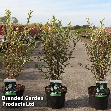 This beautiful evergreen flowering tree from New Zealand is a real spectacle from July to August when it is smothered in flurries of starry white, fragrant flowers. Hoheria sexstylosa ‘Stardust’ is an especially floriferous variety with a compact, pyramidal habit that will form a large shrub or small tree. Dense upright branches are covered in glossy, evergreen, serrated leaves which form a handsome backdrop to the clusters of sparkling flowers in late summer. RHS Award of Garden Merit. Height: 6-8 m (20 – 26 ft). Spread: 4-6 m (13 – 20 ft).
