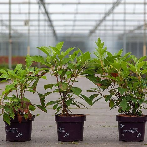 A more compact version of oak-leaved hydrangea that suits smaller gardens and containers, Hydrangea quercifolia ‘Ice Crystal’ only grows to just over a metre on maturity. This deciduous shrub bears white conical flower panicles from July to September against a background of deeply lobed foliage that takes on red and purple tones in the autumn. Oak-leaved hydrangeas are resilient, low-maintenance shrubs that require very little pruning and thrive in sun or light shade. They make excellent subjects for mixed borders or woodland areas and established specimens are more drought tolerant than Hydrangea macrophylla. Height and spread: 1-1.2m (39-47in).