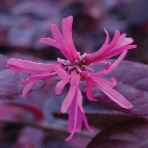 Rarely seen in gardens, this handsome spreading shrub deserves to be much better known. Evergreen purple-bronze foliage provides fabulous year round colour, and contrasts beautifully with the spidery, raspberry-red spring blooms. The flowers of Loropetalum chinense var. rubrum ‘Fire Dance’ are delicately scented, which only adds to its charms. This magnificent hardy shrub is ideal for sheltered borders and woodland gardens where it makes an eye catching specimen in spring and provides a beautiful backdrop for colourful summer perennials. Height and spread: 2m (79″).