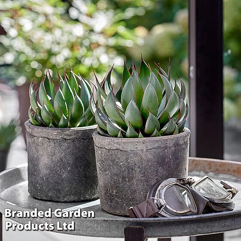 Something completely different for your Mangrave collection! One of the ‘MAD ABOUT MANGAVE®’ Series, Mangrave ‘Praying Hands’ is an extraordinary departure from the usual star-shaped rosettes. Each dark green, scale-like leaf curls upwards into the elegant form of an artichoke. The tip of each leaf is finished with a maroon spine, the spines converging at the top where the artichoke comes to a point.