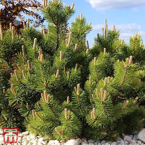 Pinus mugo ‘Benjamin’ is dwarf and compact, forming a rounded, dense ball of short, stiff, uniform needles. A profusion of slender, upright cones nestle on top of the foliage as the growing season progresses. This hardy, reliable conifer is indispensable for the rock garden, or for planting up in a container on the patio or balcony. A resilient little specimen plant, tolerant of chalk soils and unaffected by winds and frosts, making it useful for those tricky exposed sites. Height: 30cm (12″). Spread 50cm (20″).