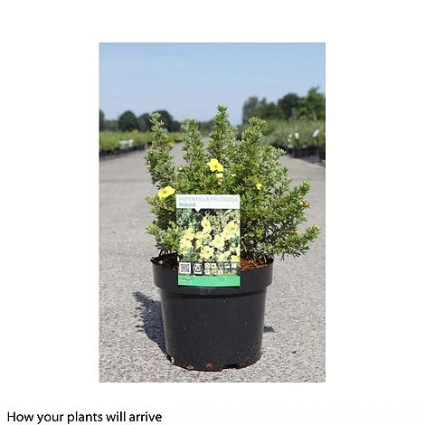 Forming a dense, bushy ball of grey green foliage, this small but well formed Shrubby Cinquefoil an ideal candidate for container growing. During summer and autumn, Potentilla fruticosa ‘Kobold’ constantly produces an abundance of bright, butter yellow blooms which will brighten up any part of the garden and really makes it stand out, despite its diminutive nature. This deciduous shrub can also be incorporated in to a flower border or shrubbery, in both cases it will certainly hold its own! Height: 60cm (24″). Spread: 60cm (24″).