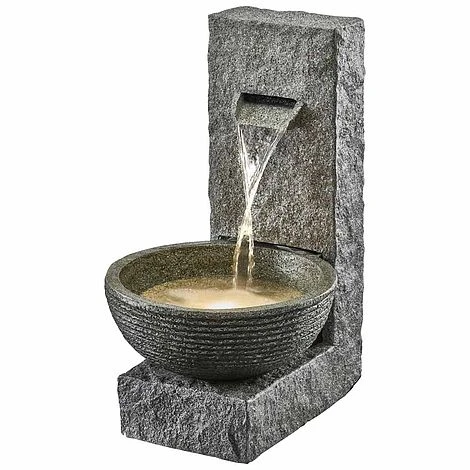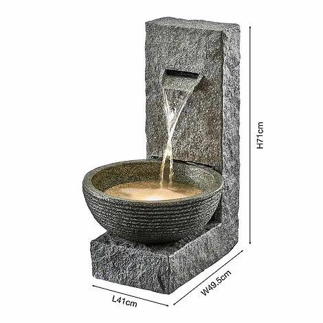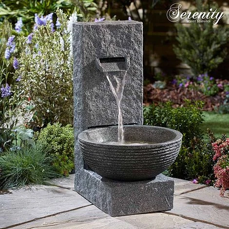 Create a beautiful focal point in your garden or courtyard with this stone-effect cascading bowl water feature from Serenity. The water feature is designed to look like a stone water feature, but is constructed from polyresin to offer a more lightweight and durable alternative. It will excite your eyes and ears as you listen to the gentle trickle of water hitting the bowl.
