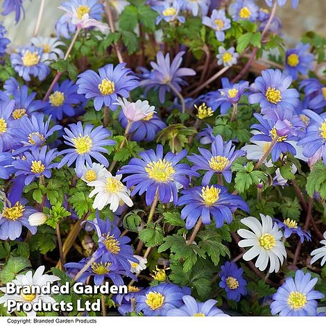 Anemone Blanda Mixed (50 bulbs) – ADaisy-like flowers stretch out their petals to form a carpet of dazzling colour. These spreading woodland perennials create a great profusion of charming blue, pink and white anemone flowers.