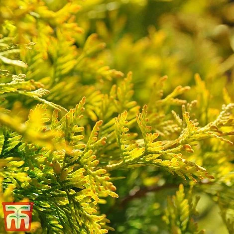 Thuja occidentalis ‘Jantar’ forms a cheery, slender, yellow-leaved conifer. Having more lateral branches than most yellow leaved cultivars, results in a much denser appearance providing year round colour and texture. The yellow-green foliage changes to a warm amber shade during late autumn and throughout the winter. This hardy evergreen conifer would provide a perfect focal point for a rockery, large container, border, or as an individual specimen. It also makes an eye catching, slow growing, hedging plant that will remain manageable as growth is only about 20cm (8″) per year. Height: 180cm (6′). Spread 90cm (3′).