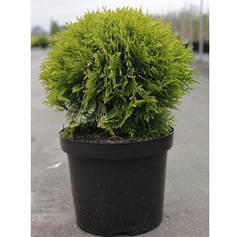 This dwarf conifer forms a neat evergreen globe that will add structure to the garden all year round. The golden foliage of Thuja occidentalis ‘Mirjam’ takes on shades of burnt-orange, bronze and green during the winter months when there is little colour elsewhere in the garden. This compact evergreen makes a lovely specimen for a rockery or patio container, needing no maintenance whatsoever from year to year. Height and spread: 90cm (36″).