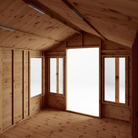 The walls of this summerhouse are constructed using premium horizontal interlocking tongue and groove boards with a shiplap profile. The shiplap profile includes a protective and aesthetically pleasing lip to create a strong, weatherproof panel. Complete with thick wooden framing to support the cladding internally, this building offers a rigid and long-lasting structure.