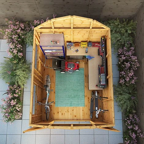 An opening Styrene glazed window floods this shed with light, creating a bright and welcoming interior. Perfect if you are planning to use this space as a functioning workshop or hobby room. We manufacture this building here in the UK, using FSC® certified timber. Using premium interlocking tongue and groove boards to create a Shiplap profile. The Shiplap profile produces a protective lip generating a structure that is strong and weatherproof. This modern garden shed is further supported by thick internal framing. Ensuring that your garden building will last for years to come. Heavy-duty tongue and groove boards are also used to form the floor and roof of this building. As their interlocking design creates a super-durable surface. Perfect for withstand the pressures presented by general daily use.