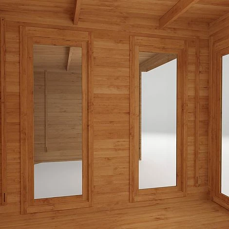 The Laurel 6m x 3m Log Cabin offers the best of both worlds, a spacious and open living area alongside a sheltered entertainment area. This sheltered area is the perfect space for a hot tub or an outdoor dining area that you can come enjoy rain or shine. The doors can be placed to face out the front of the building or alternatively you can have them open into the internal sheltered area.