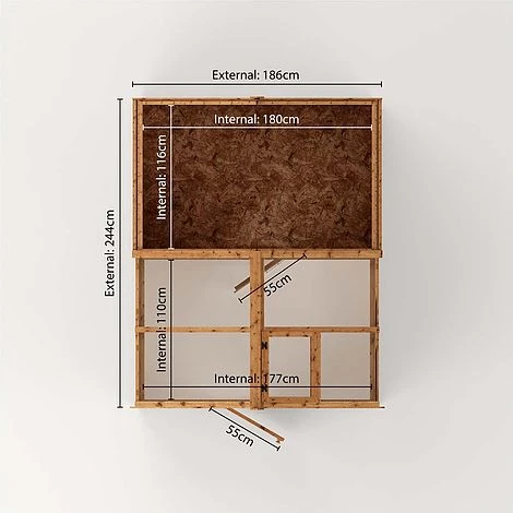 The walls of this greenhouse and shed are constructed using premium horizontal interlocking tongue and groove boards with a shiplap profile. The shiplap profile includes a protective and aesthetically pleasing lip to create a strong, weatherproof panel. Complete with thick wooden framing to support the cladding internally, this building offers a rigid and long-lasting structure. The glazing is made of UV-resistant styrene, which allows maximum light into the greenhouse while being safe and shatterproof.