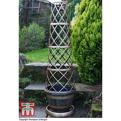 A stylish and classic look for our ingenious Tower Pot system. This wooden barrel effect Tower Pot will fit in to a traditional planting scheme seamlessly. The supportive frame is specially designed to train plants into pillars of colour on your patio. Easy to assemble, the sturdy lattice frame is ideal for all types of climbing plants, including climbing petunias, climbing geraniums and sweet peas. Simply guide the stems on to the Tower Pot™ frame and secure with soft twine. We recommend that you wear gardening gloves when removing old plants from the frame to protect your hands.